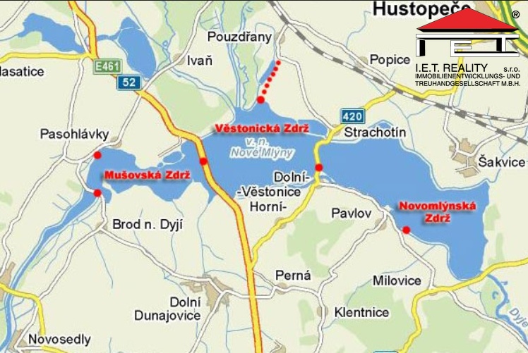 Prodej rovinatého rekreačního pozemku 11 095 m2, přiléhajícího k pravému břehu vodní nádrže Nové Mlýny (mezi obcemi Nové Mlýny a Šakvice). Jedná se o plochy smíšené občanského vybavení, bydlení, rekreace a sportu. Podrobnosti k současnému stavu a ceně poskytneme vážným zájemcům individuálně.