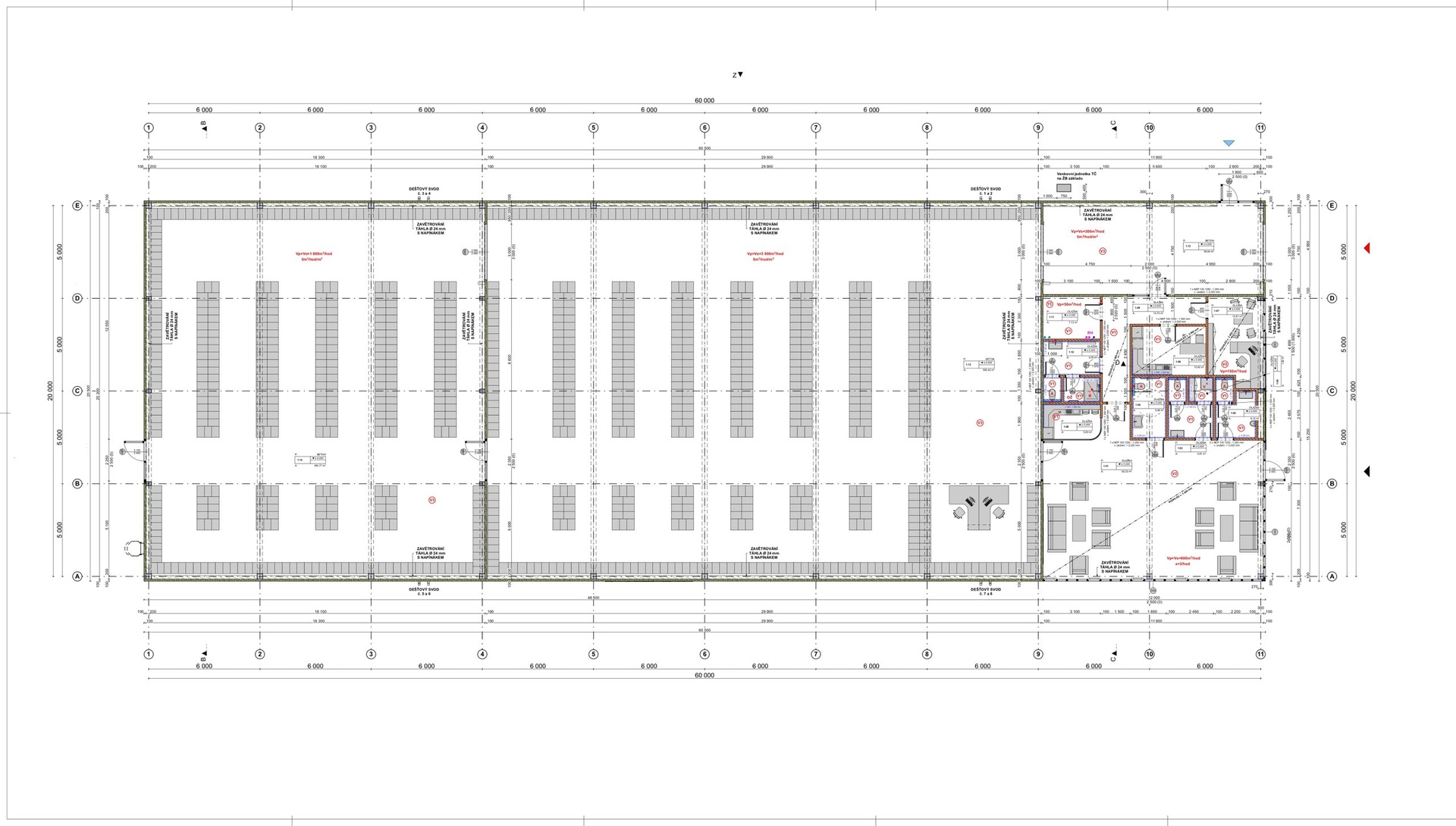 Prodej komerčního pozemku se stavebním povolením na výstavbu moderní skladovací a prodejní haly s administrativním zázemím o celkové zastavěné ploše 1 240,25 m2, navržené v energetické třídě A. Dobrý den, dovolujeme si Vám nabídnout atraktivní komerční pozemek o ploše 2 465 m2, určený k realizaci novostavby skladovací a prodejní haly dle platného stavebního povolení. Lokalita je snadno dostupná, elektřina je již přivedena na pozemek, je vyhotoven projekt napojení na obecní vodovod a celý areál je obsloužen místní asfaltovou komunikací. Navržená hala je jednopodlažní objekt s ocelovou nosnou konstrukcí a moderním opláštěním z PIR panelů. Dispozice zahrnuje dvě rozsáhlé skladovací plochy o výměře 595,43 m2 a 360,77 m2, zásobovací prostor a administrativní část o 172,83 m2 určenou pro zaměstnance i zákazníky. Energetická náročnost budovy je ve třídě A díky navržené kvalitní tepelné izolaci, moderní střešní skladbě a použití tepelného čerpadla vzduch-voda jako hlavního zdroje tepla. Celková užitná plocha objektu činí 1 185,68 m2. Součástí projektu je kompletní řešení hospodaření s vodami. Dešťové vody jsou svedeny do sestavy železobetonových jímek, které zároveň slouží jako požární nádrž. Splaškové vody jsou odváděny do samostatné jímky. Celkový návrh je funkčně připraven pro moderní a efektivní provoz. Pozemek nabízí výborné podmínky pro zásobování a manipulaci s materiálem, což jej činí ideálním pro logistiku, distribuci či provoz prodejního skladu. Díky vydanému stavebnímu povolení lze s realizací stavby začít okamžitě. Tento projekt představuje jedinečnou příležitost pro podnikatele, investory či firmy, které hledají moderní, energeticky úsporný a kapacitně velkorysý prostor pro skladování, lehkou výrobu nebo kombinaci s prodejní funkcí. Pro více informací nás neváhejte kontaktovat. Rádi Vám poskytneme projektovou dokumentaci, technické podklady i detailní informace k možnostem využití objektu.