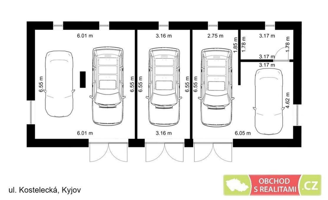 Pozemek o výměře 219 m2 se nachází v ulici Kostelecká, Kyjov, místní část Nětčice. V okolí převažuje zástavba rodinných domů, případně řadových garáží. Dle územního plánu se nemovitost nachází v území SO (Bydlení smíšené obytné), jedná se o plochy polyfunkční, tedy pro bydlení, dále např. pro občanské vybavení nebo podnikatelské aktivity. Náhled na územní plán jsme opět umístili do fotodokumentace této inzerce. Na pozemku se nachází stavba garáží, která byla kolaudována v roce 1992, na místě původního rodinného domu (ten byl z důvodu havarijního stavu zcela odstraněn). Přístup na pozemek je z veřejné komunikace ve vlastnictví města Kyjov. vlastní pozemek před garážemi má úpravu ze zámkové dlažby, vstup do objektu je prostřednictvím garážových vrat, aktuálně je objekt rozděl na tři nezávislé jednotky, tedy a) garáž se skladem, b) garáž a c) dvojgaráž. Celková výměra pozemku je 219 m2, z toho zastavěná plocha je 104 m2 (rozměr stavby je přibližně 15 × 7 m). Obvodové zdivo je cihelné o šiří 30 cm. Objekt je přízemní a nepodsklepený. Nemovitost je napojena na vodovod a veřejný rozvod elektro. Kanalizace leží v přilehlé komunikaci, zákres vedení inženýrských sítí jsme umístili do fotodokumentace této inzerce. Nemovitosti ve vlastnictví jediného vlastníka, prostá břemen nebo zástav. <a href="https://www.eurobydleni.cz/komercni-nemovitosti/komercni-objekty/hodonin/obec-kyjov/prodej/"><strong>Prodej komerční objekty Kyjov</strong></a>