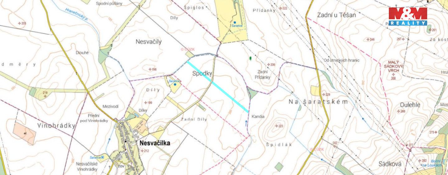 Asi 2,5 km jihovýchodně od malé vesnici Žatčany u Brna, nabízíme k prodeji pozemek o výměře 25.490 m2. V katastru nemovitostí je pozemek evidován jako orná půda a název katastrálního území je Žatčany. Na hranici pozemků teče Hranečnický potok. V případě zájmu nás neváhejte kontaktovat.