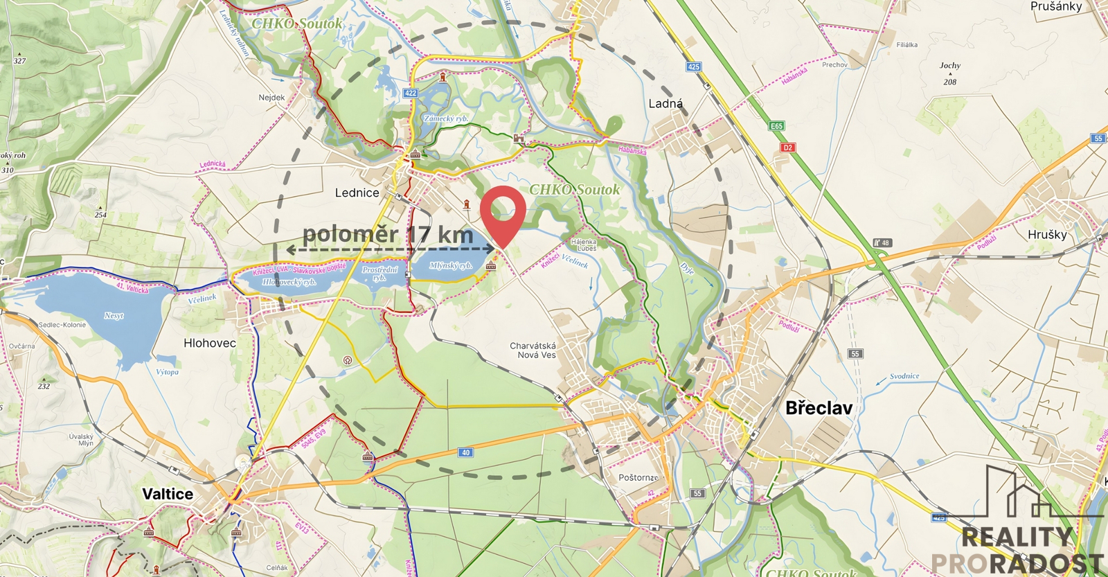 Hledáte stavební pozemek kde si postavíte rekreační objekt dle vlastních představ? Právě Vám nabízíme parcelu, rovinatý pozemek obdélníkového tvaru o výměře 1.992 m2, který je přístupný z příjezdové cesty s uliční šíří 11,5 m. Pozemek leží na hranici Lednicko - valtického areálu a nachází se zde kvelbený sklep a 3 řádky vinohradu. Parcela je čistá, bez náletových dřevin a je připravena pro realizaci plánů nového majitele. V 90. letech byl postavený sklep a zbudována kopaná studna. Sklep má vnitřní rozměry 3 x 6 m, výška 2,5 m. Pro jeho plnohodnotné využití je potřeba vstup osadit dveřmi. Na hranici pozemku se nachází přípojka elektřiny. Voda je zabezpečena vlastní studnou. V územním plánu má pozemek označení „k rekreaci“. Zahrada s výhledem do přírody je svou velikostí a místem vhodná ke stavbě rekreačního objektu, popřípadě k podnikání v turistickém ruchu. V okolí se nachází zahrady s vinicemi, sady, s chatami či s menšími domky. Zahrada leží na hranici Lednicko - Valtického areálu, který je zapsaný na seznamu světového dědictví UNESCO a je oblíbeným cílem návštěvníků. Je zde velké množství cyklistických tras. Pokud hledáte pěkné a klidné místo pro relaxaci s blízkou dostupností města a tato nabídka Vás zaujala, zavolejte si pro více informací a sjednejte si termín osobní prohlídky. S financováním pomůžeme. Těším se na viděnou. Vaše makléřka Marie