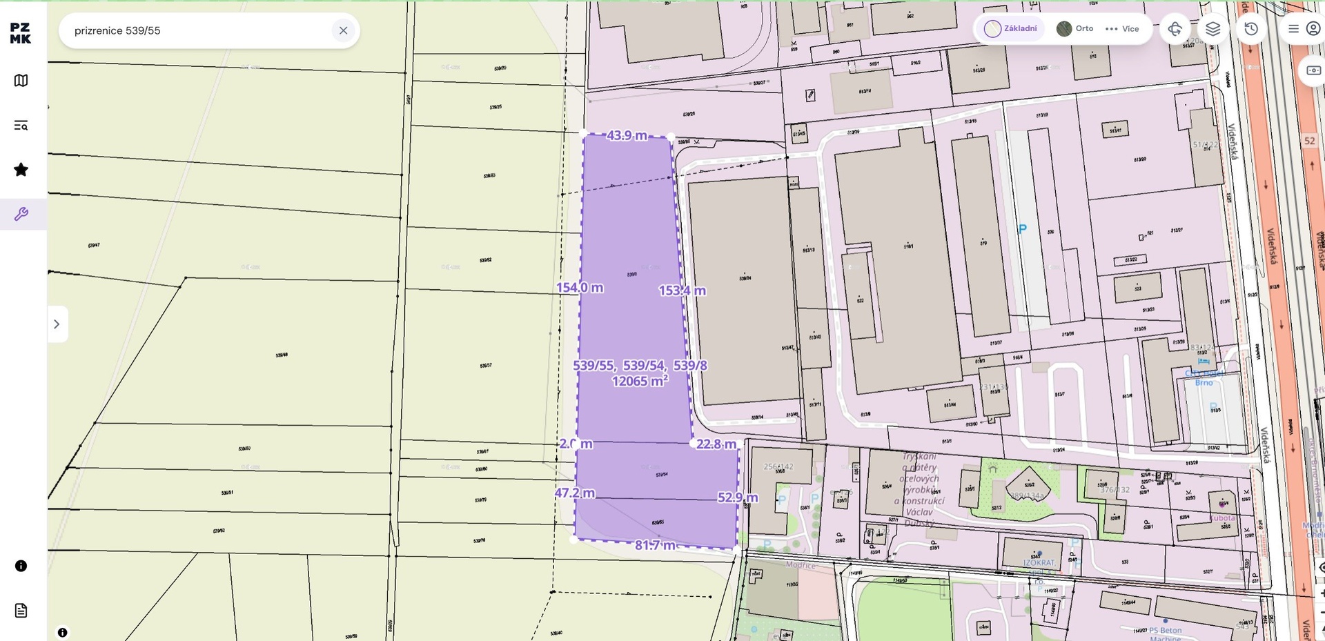 Nabízíme k prodeji sousedící pozemky o celkové rozloze 12 065 m2 v perspektivní lokalitě Brno - Přízřenice, přímo u Vídeňské ulice, jedné z hlavních dopravních tepen města. Klíčové vlastnosti: • Lokalita: Jižní část Brna, výborná dostupnost na dálnici D1 a do centra města. • Přístup: K pozemkům vede asfaltová komunikace ve vlastnictví města Brna a Modřic a na ni navazuje podél pozemků historická asfaltová cesta. • Inženýrské sítě: Přes pozemky vede elektřina, v lokalitě je plánováno prodloužení vodovodu. • Celková výměra: 12 065 m2 (parcely č. 539/8, 539/54, 539/55). Územní plán a možnosti využití: • Pozemky jsou součástí zóny VL-A3 - lehké výrobní a skladové plochy. • Přípustné využití: lehká výroba, skladování, provozy s nízkým dopadem (hluk, emise). • Nepřípustné: těžký průmysl, energeticky náročné technologie. • Lokalita je zahrnuta do rozvojového území města Brna (změna ÚPmB B40/15-0), s cílem vytvořit moderní městskou čtvrť kombinující výrobu, služby a občanskou vybavenost. Aktuální stav a projekty: • Souhlas EG.D., a.s. s FVe elektrárnou (999,9 kWp) - smlouva o připojení č. 9002124699. • Na parcele 539/55 je navržena trafostanice a VN kabelová smyčka. • Na parcele 539/8 je podána žádost o připojení záložního zdroje (diesel generátor 4000 kW). Výhody investice: • Strategická poloha v rozvojové zóně Brna. • Napojení na hlavní dopravní tahy. • Možnost okamžité realizace energetických projektů a lehké výroby. • Budoucí růst hodnoty díky plánovanému rozvoji infrastruktury. Cena a další informace na vyžádání. Neváhejte nás kontaktovat pro více detailů a sjednání prohlídky.