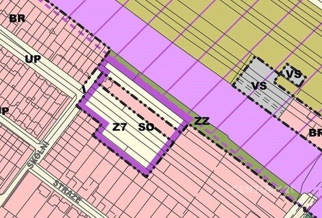 Nabízíme k prodeji pozemek o výměře 2 237 m2 vedený jako zahrada, který se nachází v intravilánu města Lanžhot. Pozemek je součástí návrhové plochy Z7 v územním plánu, která je určena jako SO - smíšené obytné území (z celkové rozlohy cca 1 215 m2). Tato plocha umožňuje výstavbu rodinných a bytových domů, občanské vybavenosti, menších služeb či drobných provozoven. Nepřípustné jsou výrobní či logistické areály, které by narušovaly kvalitu bydlení. Regulace připouští zástavbu do dvou nadzemních podlaží s možností podkroví, přičemž každý objekt musí být napojen na veřejnou komunikaci a technickou infrastrukturu a parkování musí být řešeno na vlastním pozemku. Pozemek o rozměrech cca 121,5 × 18,4 m je dobře přístupný a je možné jej napojit na vodovod, kanalizaci a elektrickou síť. Lokalita přímo navazuje na stávající obytnou zástavbu, čímž podporuje kompaktní rozvoj města. Do pozemku částečně zasahuje plocha ZZ (zemědělské využití, bez možnosti zástavby) a také územní rezerva pro vysokorychlostní trať (VRT). Služebnosti přes sousední pozemek jsou zřízeny bezúplatně, na dobu neurčitou a jsou závazné i pro budoucí vlastníky. Pozemek představuje zajímavou investiční příležitost pro výstavbu bydlení v kombinaci s občanskou vybaveností nebo drobnými službami v atraktivní lokalitě města Lanžhot.